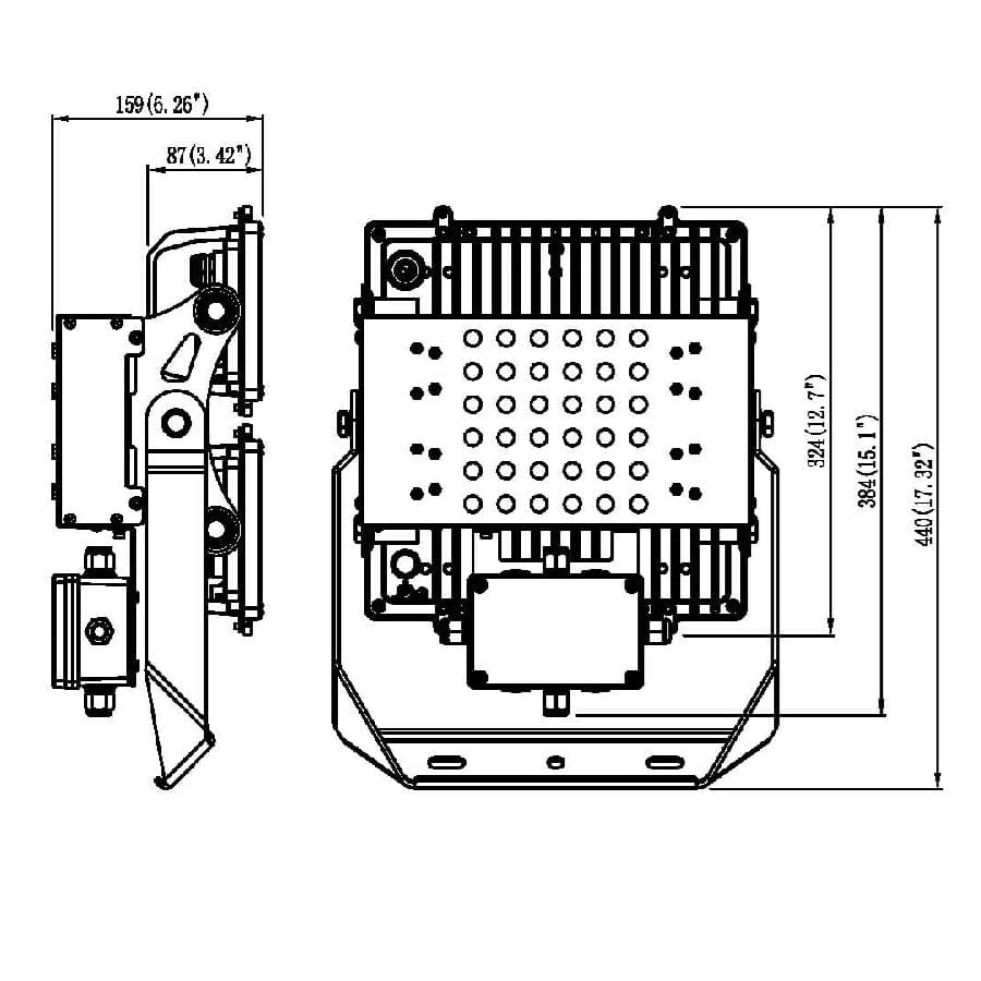The IMF-400 is an excellent option for sports fields, arenas, and industrial areas. This is our best-selling flood light family for a reason with tons of light output and versatility. This 400 watts Modular LED Flood Light is a powerful solution for outdoor lighting, suitable for parking lots, sports fields, and industrial areas. It delivers 56,000 lumens with an efficiency of 140 lumens per watt. Designed to withstand tough conditions, it provides reliable performance for demanding environments.
