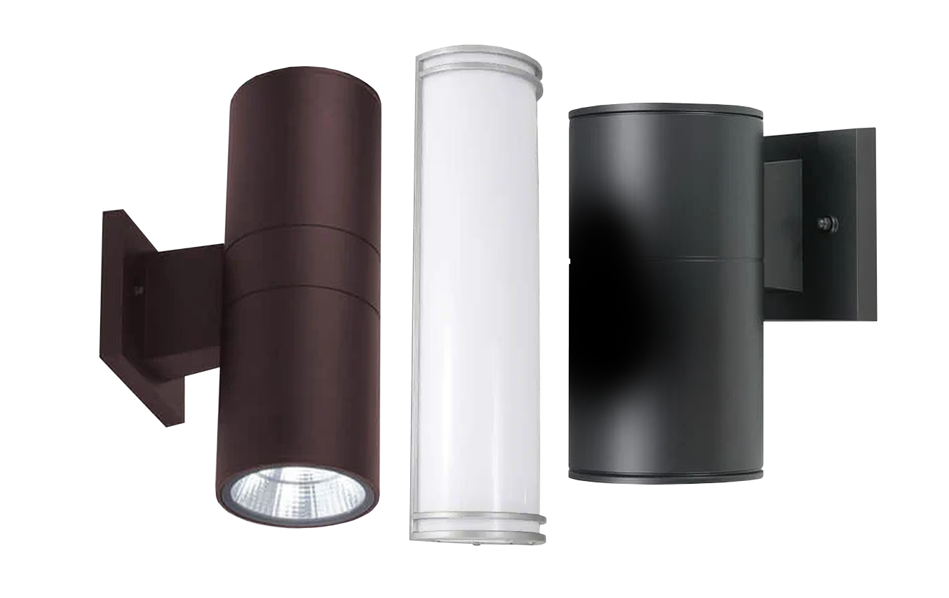 LED wall sconces are architectural lighting fixtures designed for mounting on walls or columns in commercial environments. They provide up-lighting or bi-directional up/down illumination patterns to create sophisticated ambient lighting around building entrances, lobbies, hallways, and exterior architectural features. Available in white, black, and bronze finishes, these fixtures enhance modern commercial buildings while delivering functional lighting for offices, hotels, retail spaces, and institutional facilities.