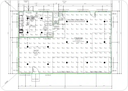 A photometric lighting plan created by our lighting designers is the first step when adding or upgrading existing lighting in your facility. The photometric plan confirms important attributes, including the light intensity and distribution of your project.