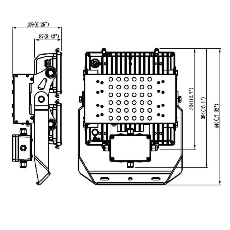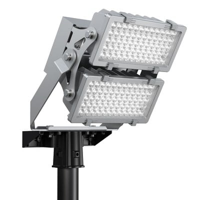 The IMF-400 is an excellent option for sports fields, arenas, and industrial areas. This is our best-selling flood light family for a reason with tons of light output and versatility. This 400 watts Modular LED Flood Light is a powerful solution for outdoor lighting, suitable for parking lots, sports fields, and industrial areas. It delivers 56,000 lumens with an efficiency of 140 lumens per watt. Designed to withstand tough conditions, it provides reliable performance for demanding environments.