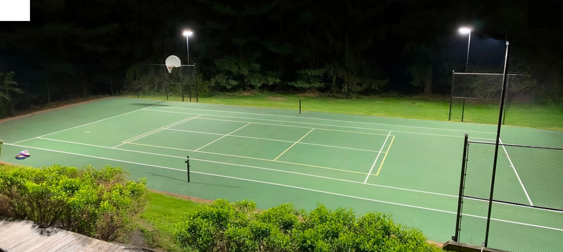 We outfitted this backyard court with 300 Watt LED Shoebox Area Light | 46500 Lumens. Lighting is bright and balanced.